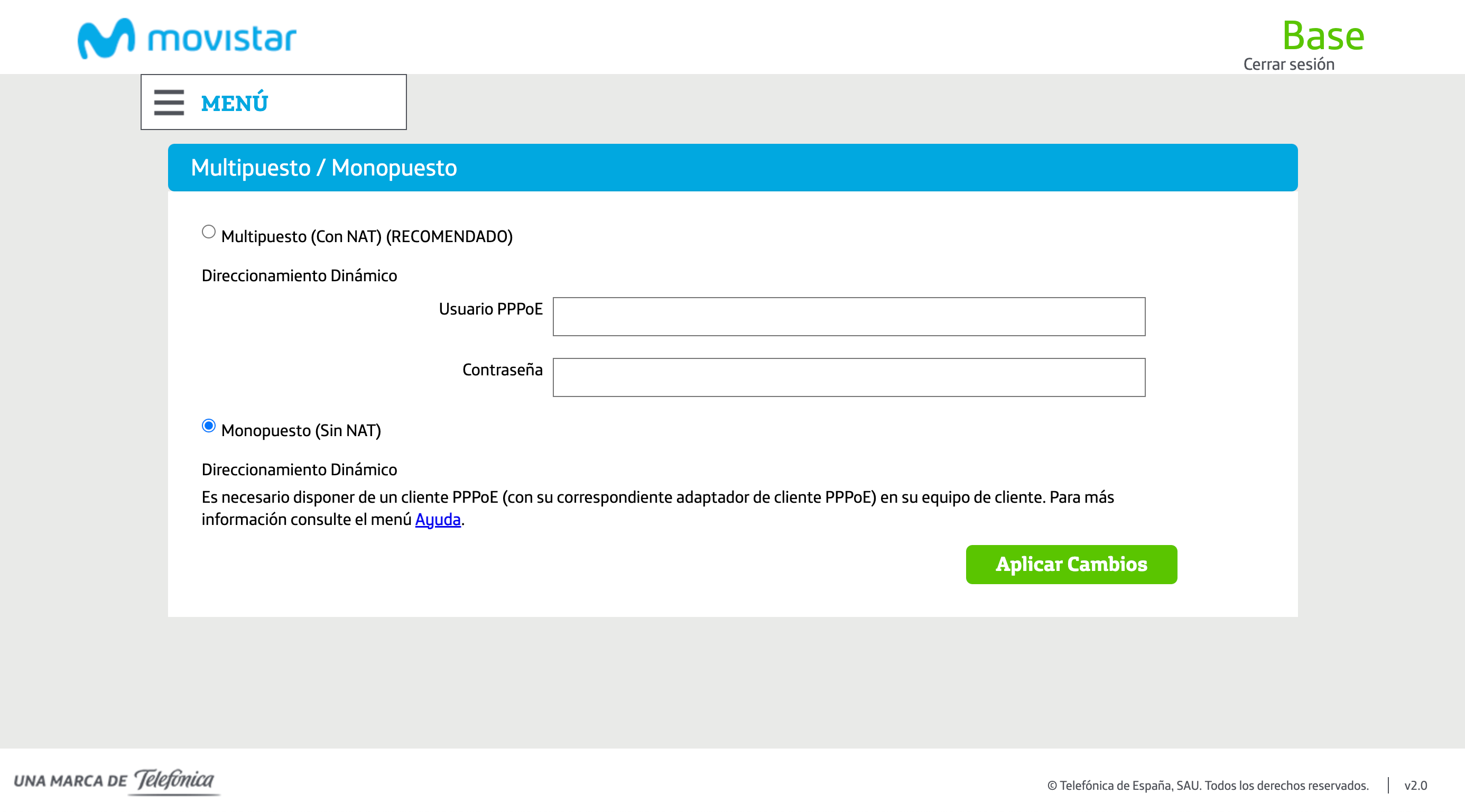 Si no quieres actualizar el firmware por una versión más nueva, la solución al problema pasa por entrar en el menú Multipuesto/Monopuesto y: