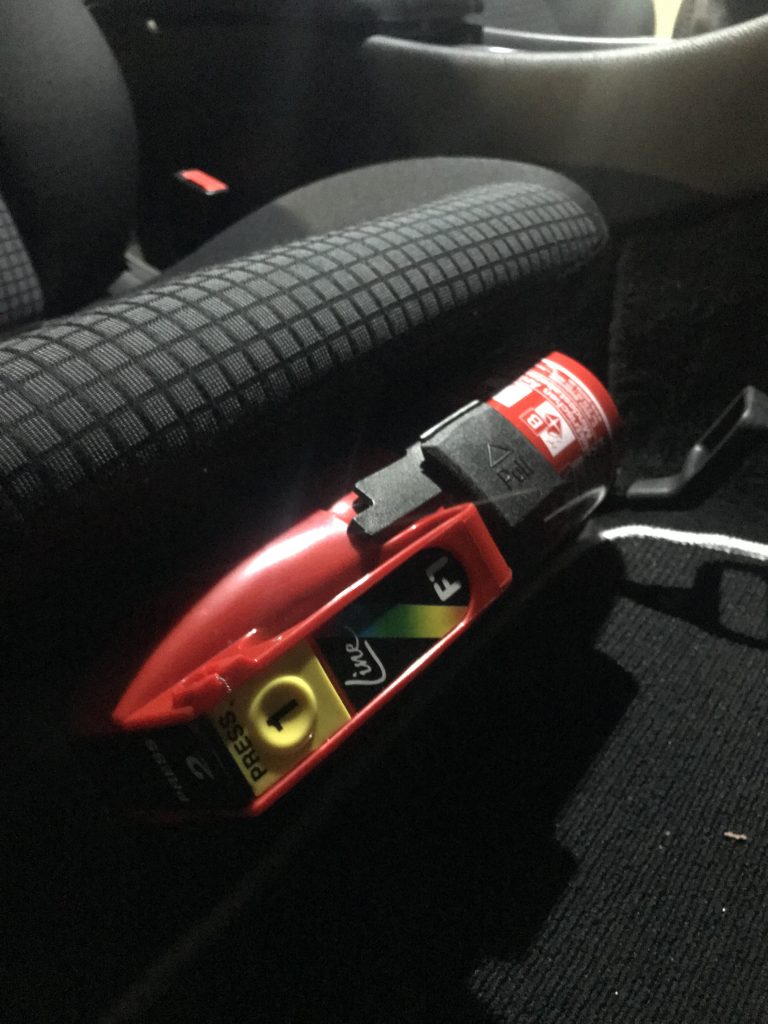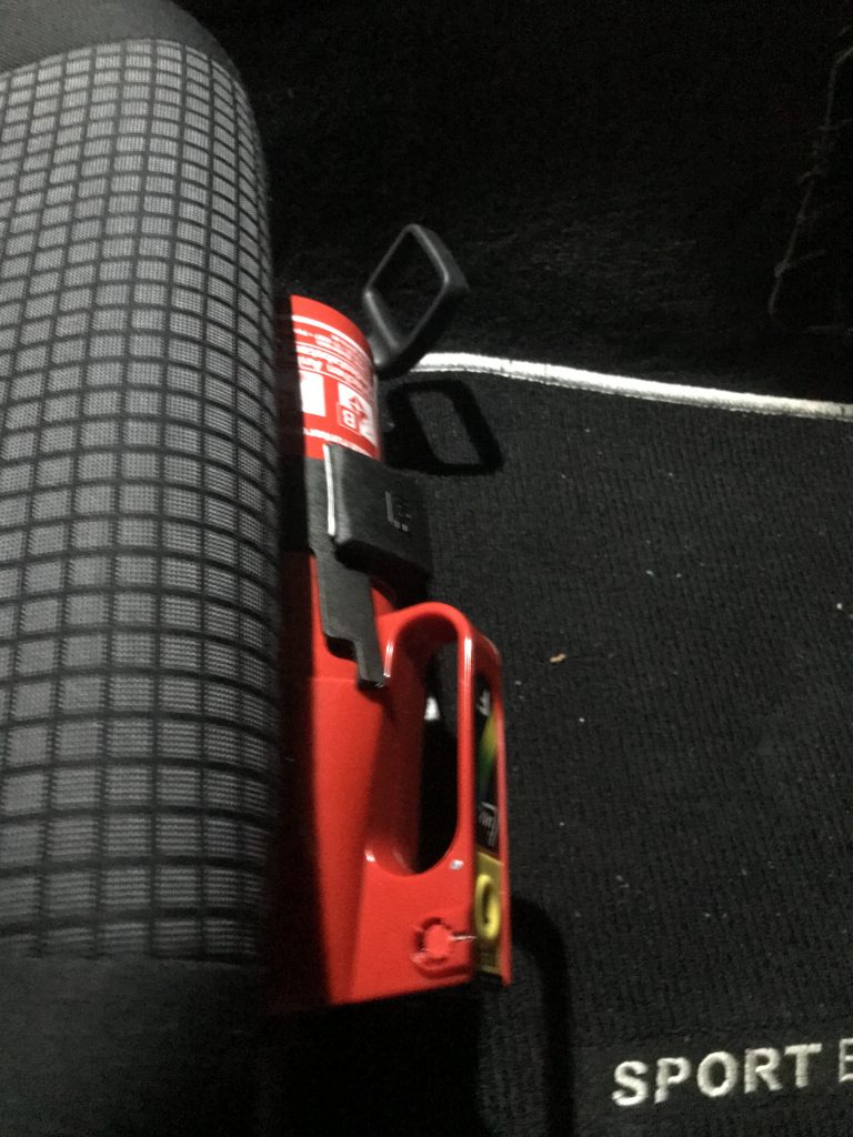 Al poco tiempo de comprar el coche le quise montar un extintor de incendios y hasta hace poco no me decidí a hacerlo. Como en todas las modificaciones que ideo, procuro que queden lo más integradas en el vehículo y que el resultado final sea lo más original posible, intentando evitar que den el cante.